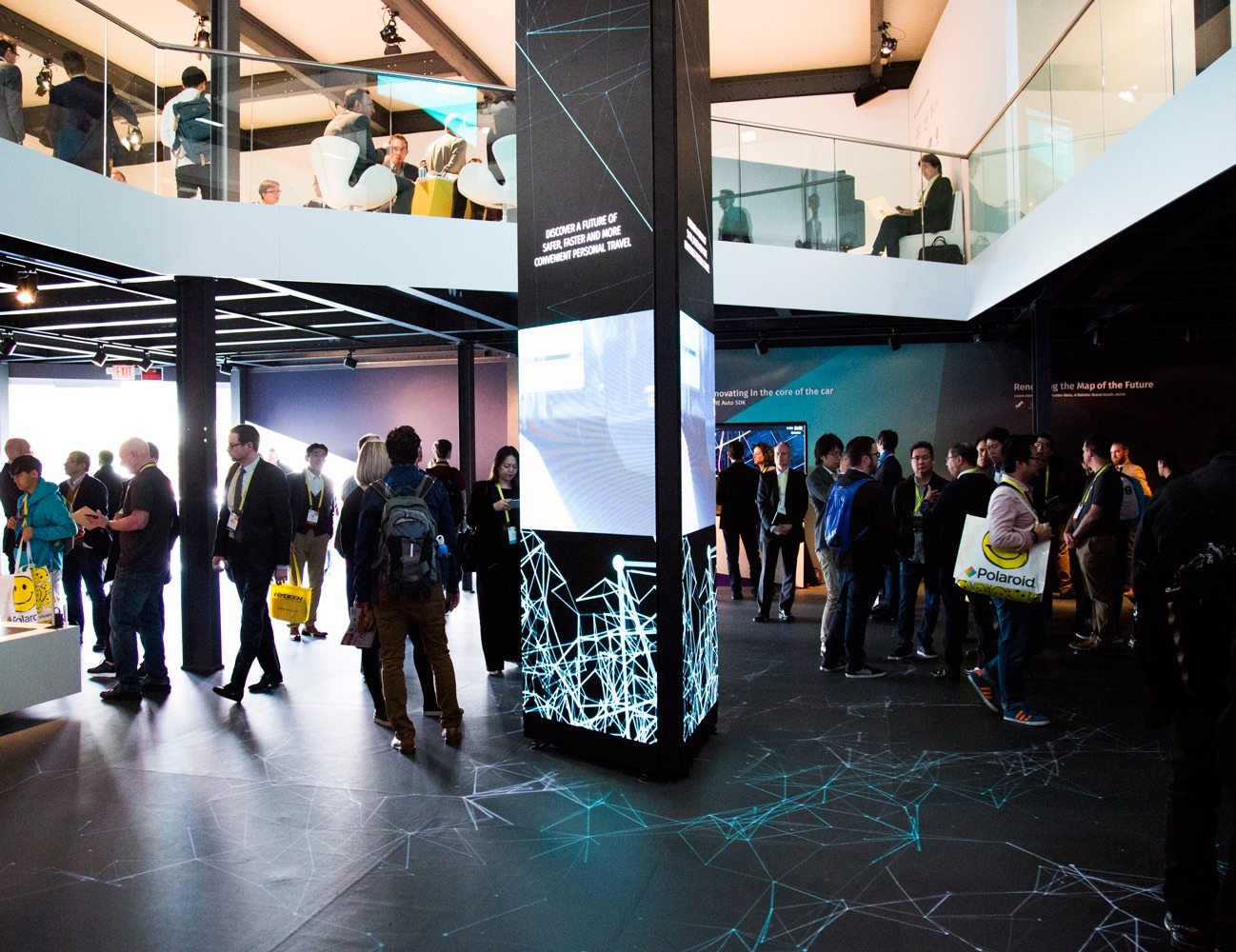 HERE is one of the World’s leading mapping, navigation and location data brands. For their exhibition at CES 2017, they needed an engaging experience that would capture their visitors at the centre of their booth experience. It needed to portray their future brand vision while relating to 10 interactive demo stations surrounding it.