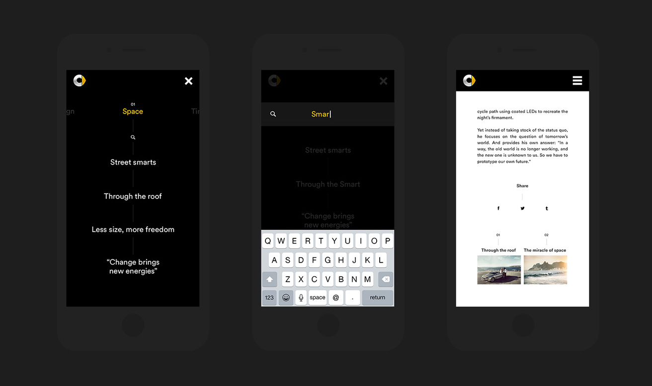 Keeping the Smart brand values close to heart Acne developed a functional, innovative and visionary design for the relaunch / restructuring of Smart Magazine. The approach focuses on the quality of the brand to create a magazine experience that is both pure and aesthetic, as well as visually stunning to engage users and elevate their overall response to the magazine. The attention is directed at a more mobile approach, but keeps the responsive element of the concept in mind to engage users across all platforms and devices.