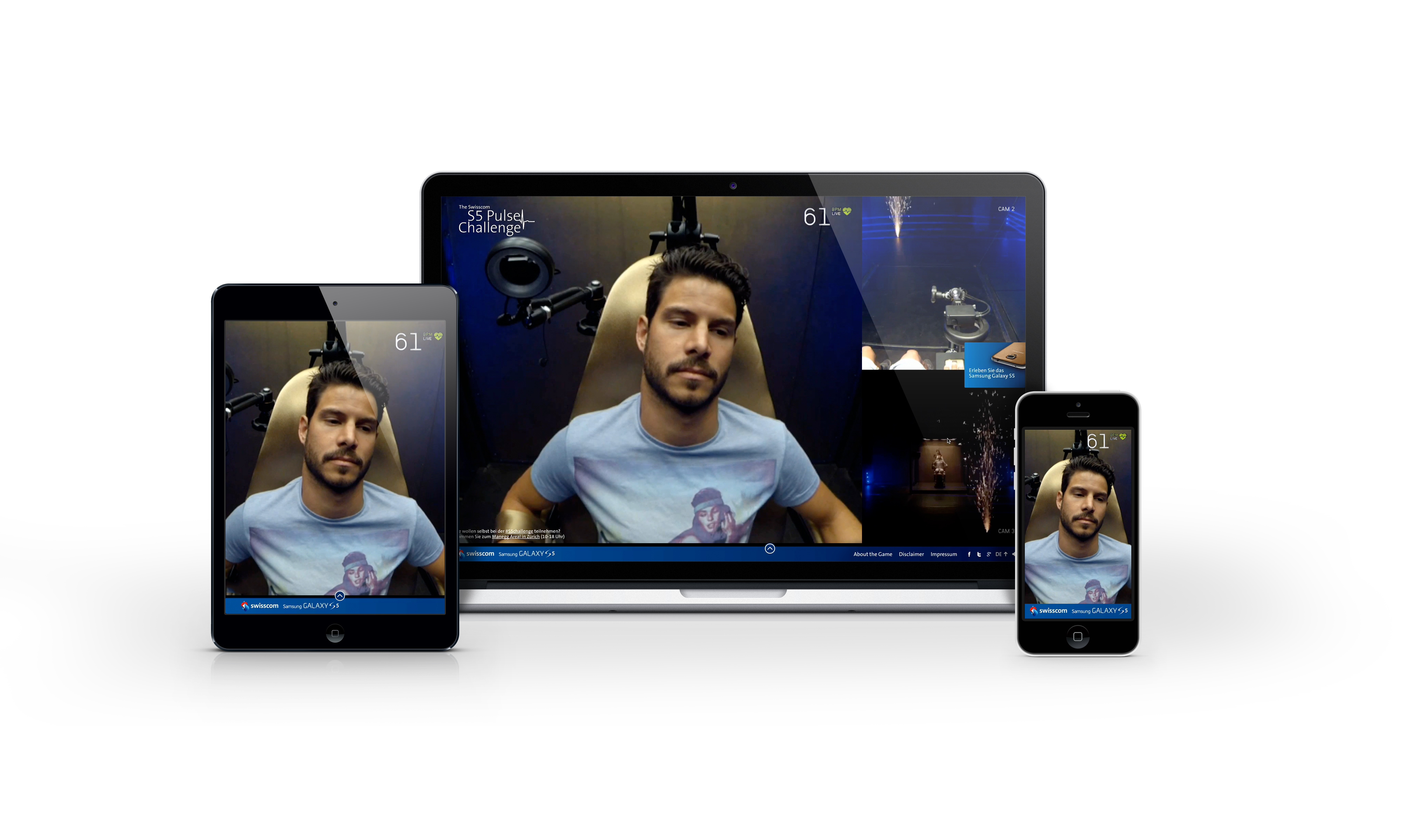 In May 2014 thirty of more than 1000 applicants had the chance to prove they have nerves of steel and win a brand new Samsung Galaxy S5. On a set located in Zurich the contestants had to face the S5 Pulse Challenge – a thrilling show to test peoples coolness and intrepidity. Rules were quite simple: Just keep your pulse below 100 bpm and remain seated!