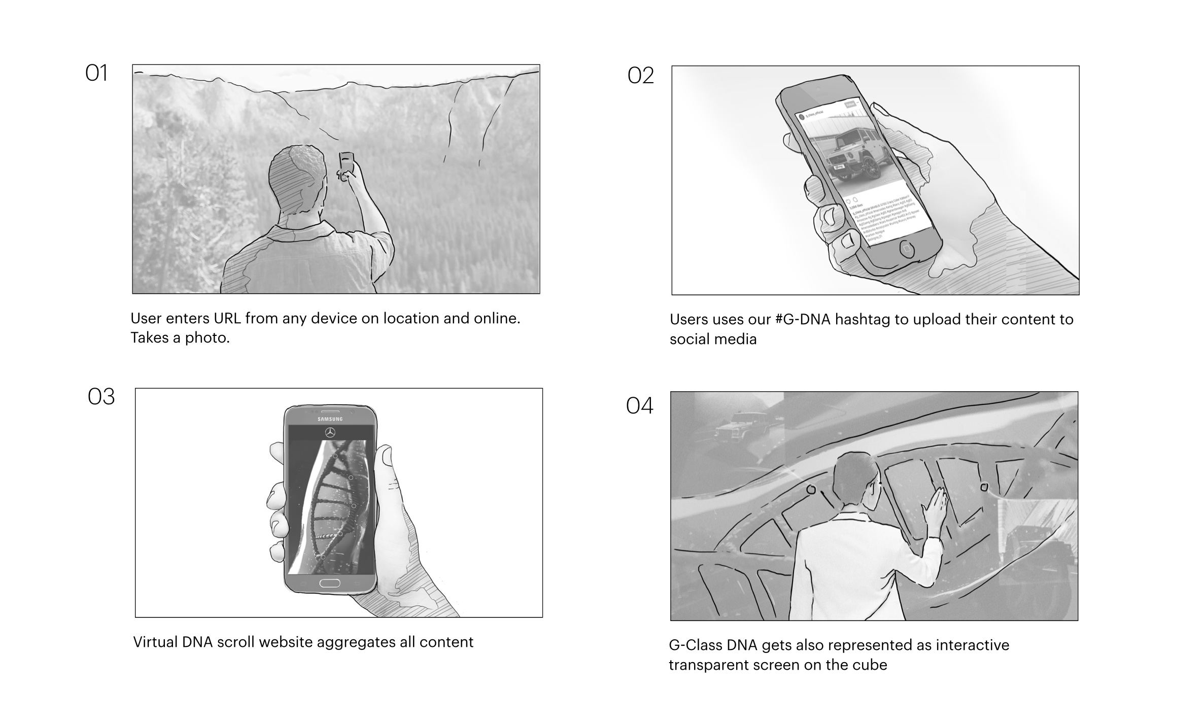 For the launch of the new G-Class we decided that the car with the strongest DNA needs something that celebrates its unique genes. Result: a worldwide campaign as iconic as the car’s striking elements. The Amber Cube. 46 tons of resin plus one of the very first Gs with the legend’s original DNA. A timeless monument for a timeless car. I was responsible for digital concept around the installation. I was responsible for digital concepts (Copy, Design, Video) around the cube.