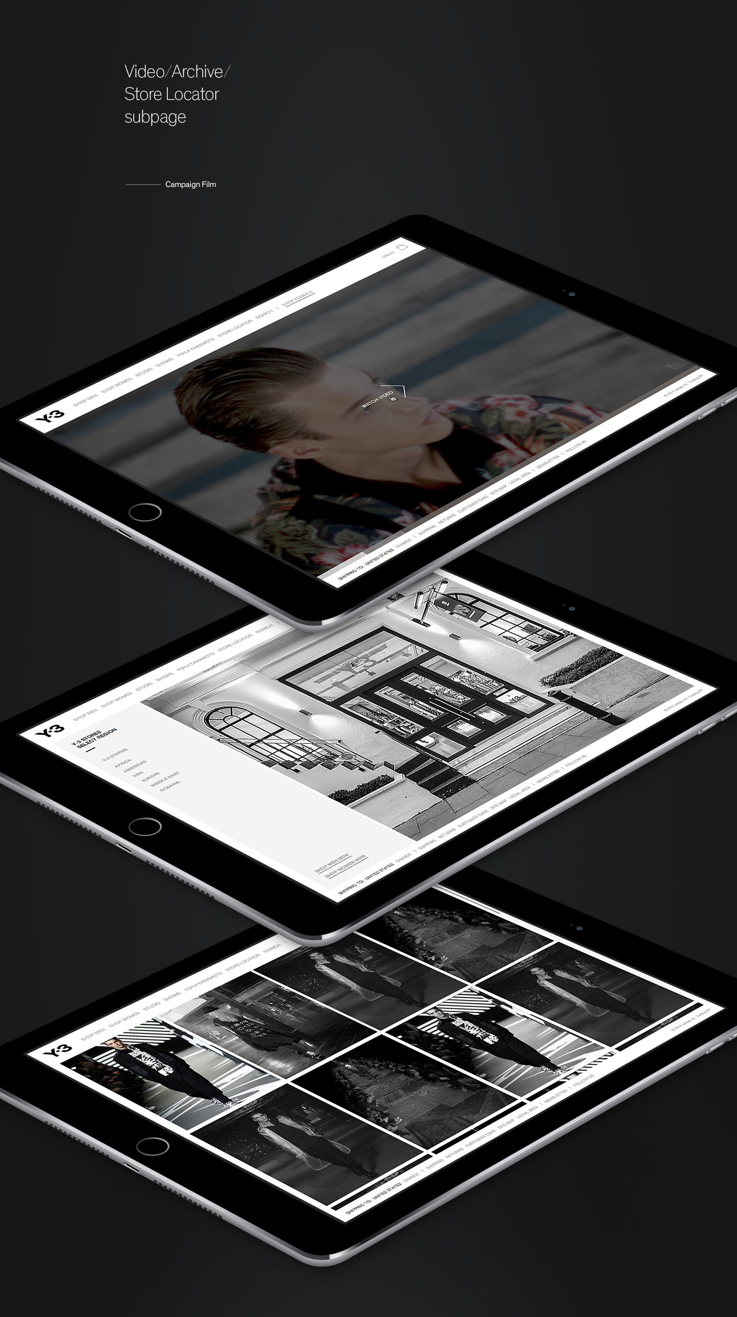 Acne was responsible for Adidas Y3 and Porshe Design Sport online presence. That included official website and campaign sites, social media, newsletters. For three seasons I was responsible for Creative Direction, Art Direction and Lead Design on Campaign Hub, Online Store and Social media channels.